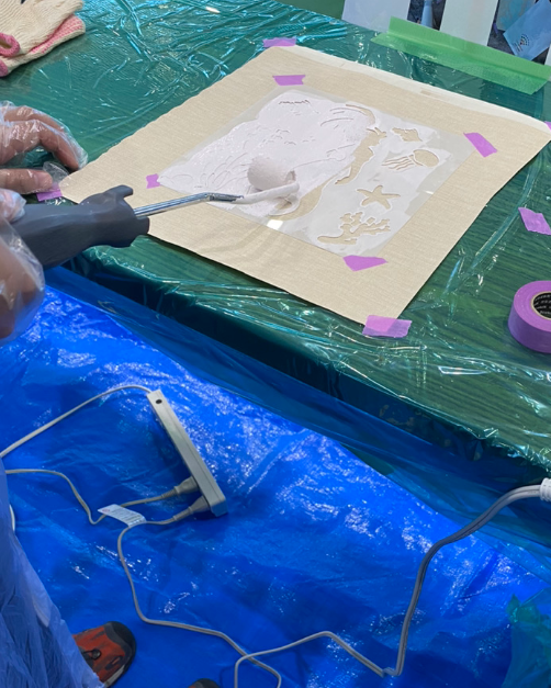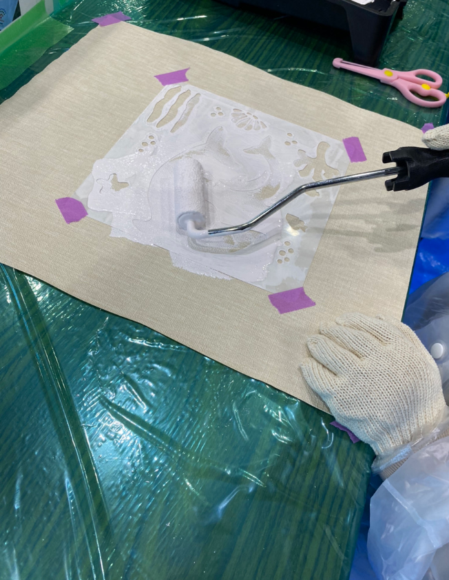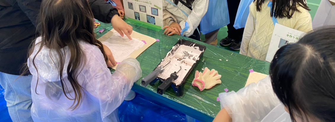 弊社は関西ペイントさんの漆喰塗料アレスシックイを使って「手作り消臭・除菌シート」を作ってもらう、職業体験ブースとして出店いたしました。