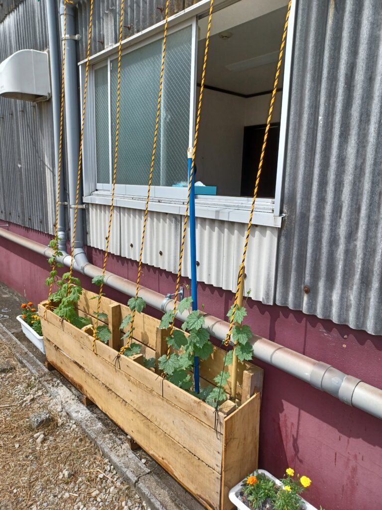 弊社では初の試み、グリーンカーテンを設置しました。